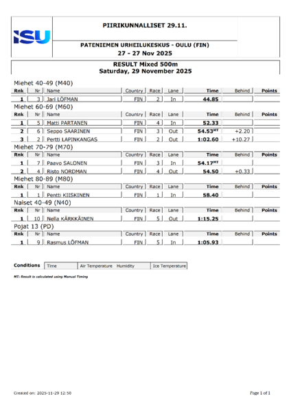 Lisätietoja ja lähtölistat: Päivitetään kisaraporttiin.